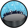 13" Hockey figure on a riser with colored Hockey Puck in center on a black base.